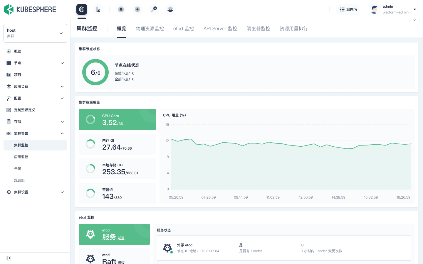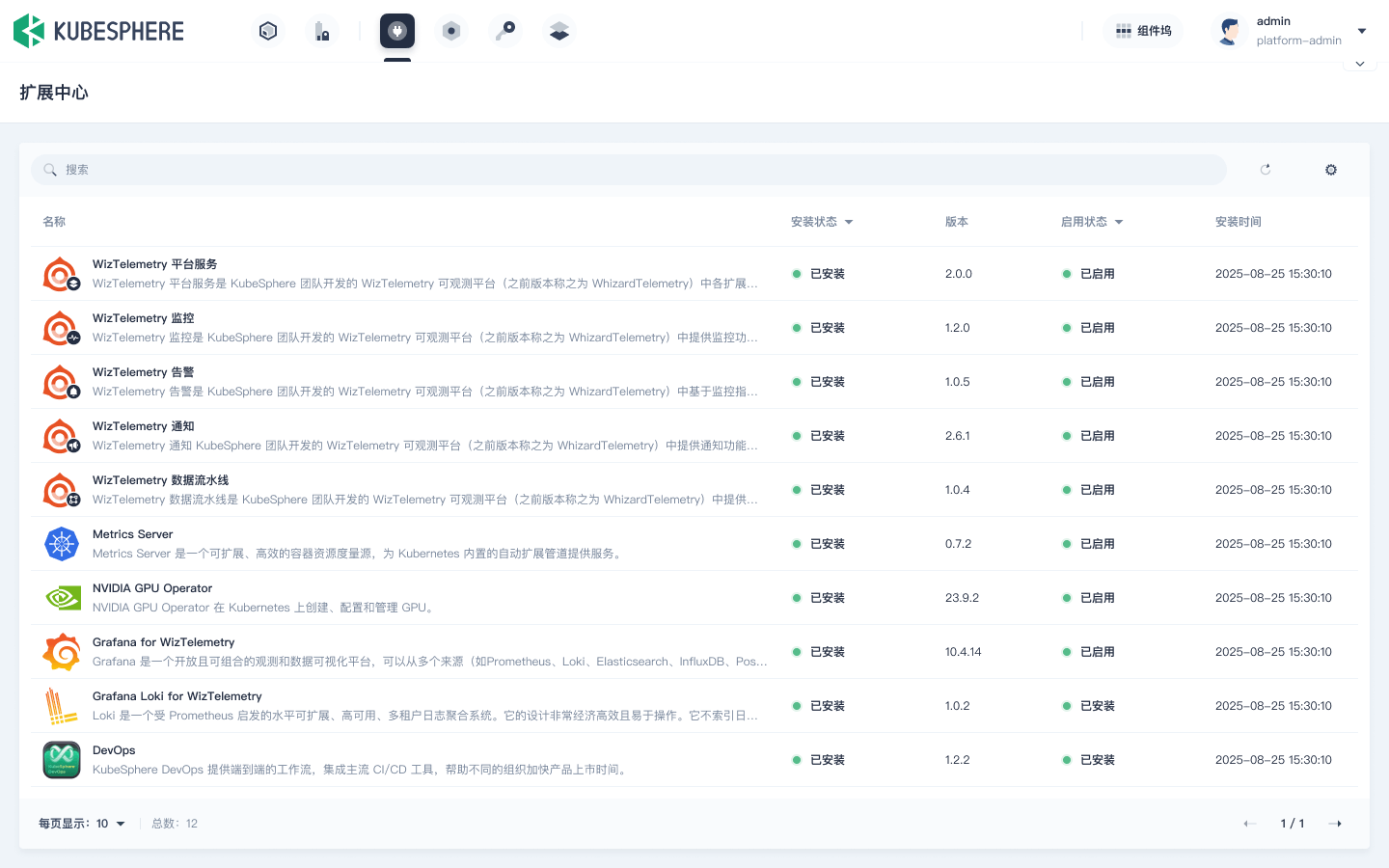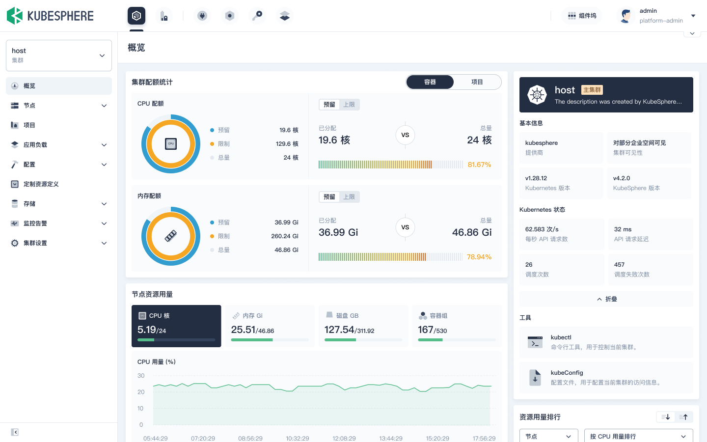 KubeSphere 是在 Kubernetes 之上构建的以应用为中心的多租户容器平台,提供全栈的 IT 自动化运维的能力,简化企业的 DevOps 工作流。KubeSphere 提供了运维友好的向导式操作界面,帮助企业快速构建一个强大和功能丰富的容器云平台。